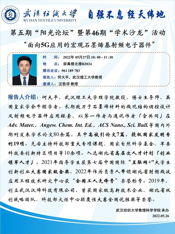 上一条:第140期“阳光论坛”暨数理科学学院第47期“学术沙龙”活动预报 下一条:2022年数理科学学院第十期研究生论坛如期举行