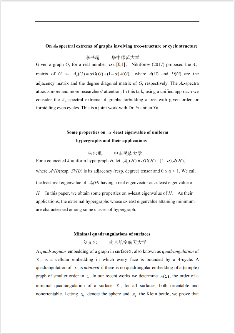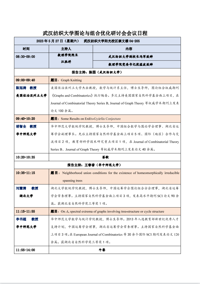 阳光校区崇文楼04-205举办“2023图论与组合优化研讨会”,本次研讨会的主题为结构图论、极值图论、代数图论、随机图论、图的算法、组合理论、组合计数、组合设计、组合优化及相关问题。热忱邀请各位专家、老师和同学们参加会议。