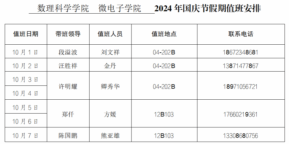 上一条:2024年数理科学学院硕士研究生导师资格认定办法 下一条:数理科学学院 微电子学院 2024年中秋节假期值班安排