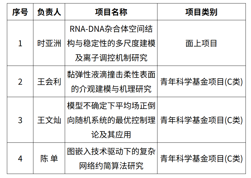 此次立项不仅体现了我院教师扎实的科研功底与突出的学术潜力,也彰显了学院在数学及相关领域日益增强的学术影响力和社会贡献度。展望未来,学院将继续加大科研支持与服务保障力度,积极构建高水平学术交流与合作机制,全面推动科研创新能力与成果转化效能不断提升。