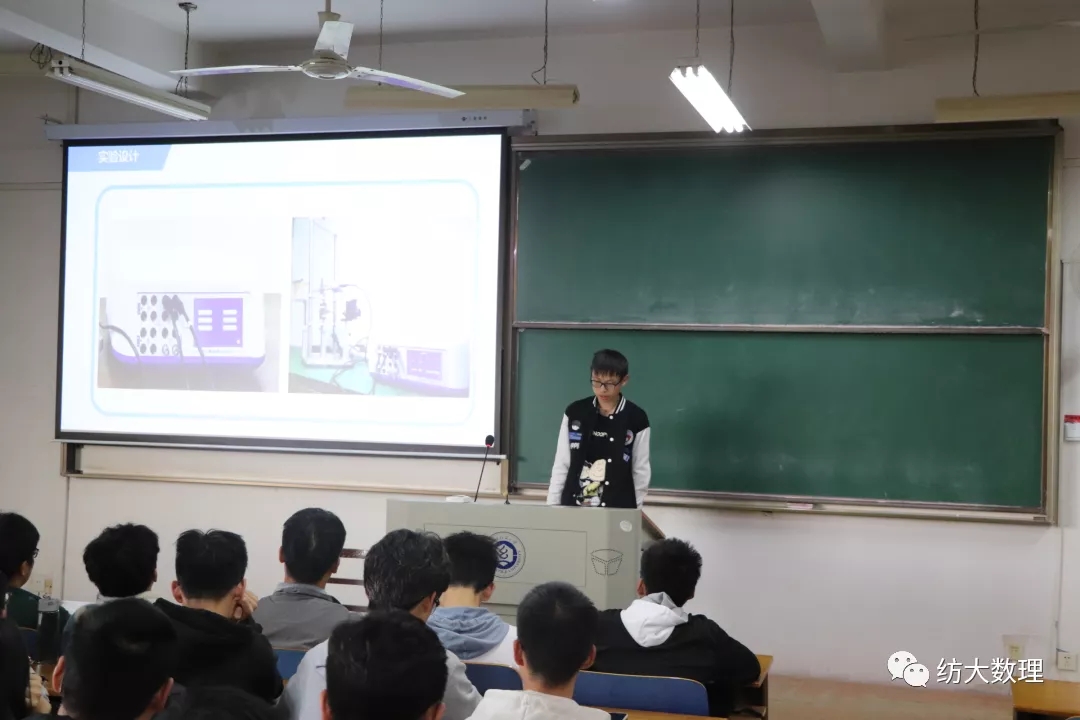 会议伊始,时亚洲老师为在场同学主讲了《数学建模-让数学走近生活》,并鼓励学生积极参加数学建模大赛。他与同学们交流了“为什么学数学”,“数学到底有没有用”,“数学建模给我们带来什么”等问题,他希望同学们能加强自主学习能力,丰富实践知识。随后,曾中良老师向同学们介绍《大学生物理实验竞赛简析》,他以“赛教融合,协同创新”为中心,简要的介绍了大学生物理实验竞赛的办赛背景、办赛目的、组织机构、比赛类别、参赛资格及赛程设置等,并展示部分典型案例。他希望,同学们要有远大的科学理想,正确的世界观、方法论以及团队合作意识,方能成人成才,创新创造。