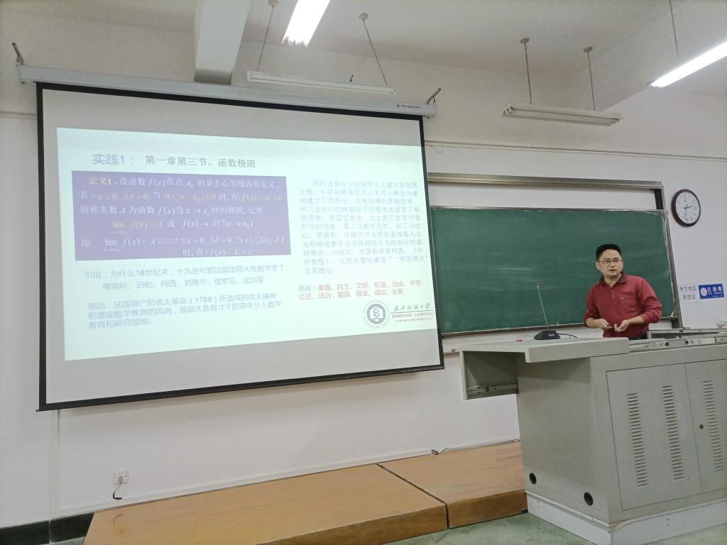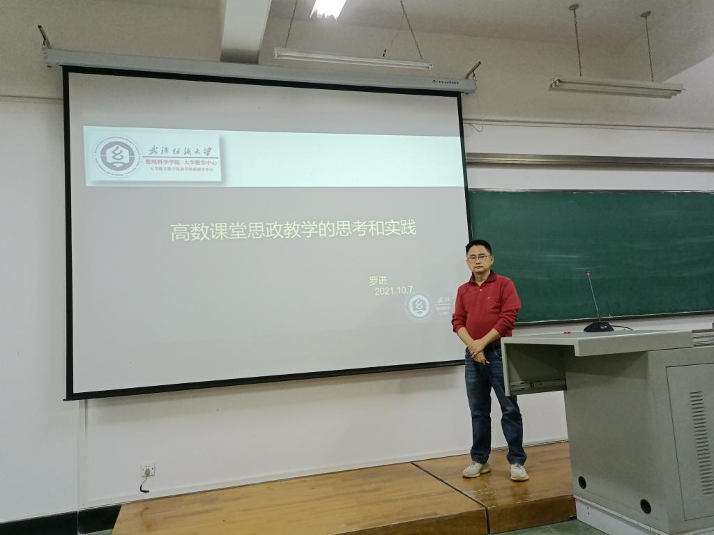 罗进老师的报告题目为“高等数学课堂思政教学的思考和实践”。该报告介绍了函数极限及无穷小比较章节的思政内容,从极限的发展史引申到社会主义核心价值观的宣讲,从无穷小的比较到学生树立正确人生观、世界观、价值观的方法途径。