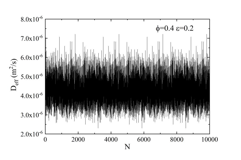 《Fractals》(IF:3.665)在线接收题为:Effective gas diffusion coefficient of fractal porous media with rough surfaces by Monte Carlo simulations的论文,该论文通讯作者为我校应用数学与交叉科学研究中心郑仟副教授,第一作者为研究生尹作壮同学。气体扩散系数是表征多孔介质输运特性的一个重要参数。本文基于微观毛细管的分形特征,采用蒙特卡罗方法研究了毛细管表面粗糙度对气体扩散的影响,提出了粗糙表面多孔介质有效气体扩散系数的概率模型。该模型表示为多孔介质几何参数的函数,如孔隙度、孔隙分形维数、迂曲度分形维数和相对粗糙度。论文着重探讨了相对粗糙度对有效气体扩散系数的影响,结果表明,粗糙表面多孔介质的有效气体扩散系数随着相对粗糙度的增加而减小。此外,该研究还详细分析了多孔介质其它结构参数对气体扩散的影响。该模拟方法可推广用于粗糙表面分形多孔介质中的气体流动和传热过程的分析。