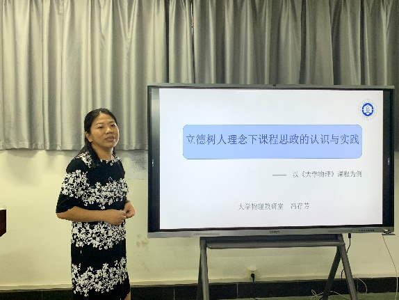 冯存芳博士围绕课程思政,结合大学物理课程,做了题为“立德树人理念下课程思政的认识与实践”的教研报告。报告主要从课程思政之起源、课程思政之思路和课程思政之案例三个方面做了细致的阐述。对于起源问题,十八大以来在习近平总书记对立德树人论述的再认识会议上,党中央明确表示高校思想政治工作关系高校培养什么样的人,如何培养人以及为谁培养人这个根本问题,要坚持把立德树人作为中心环节,把思想政治工作贯穿教育教学全过程,实现全程育人、全方位育人,努力开创我国高等教育事业发展的新局面。在思路上,要把握课程思政的基础是课程,关键在于老师,可以采用多种方法将思政引入教学过程中,比如启发式、比较法、讲授法和案例法。最后冯博士列举了一些大学物理教学中的思政案例。本次报告给老师们如何将课程思政引入课堂做了很好的引导,让老师们受益匪浅。