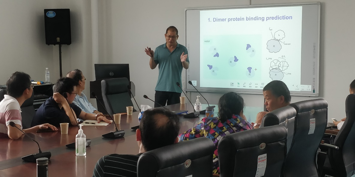 报告中,龚新奇教授系统地介绍了其课题组的一系列工作。前期,龚教授基于快速傅里叶变化、蒙特卡洛、遗传算法等经典算法开发了蛋白质对接方法。之后,为了解决超大多体蛋白质相互作用复合物分子机器、医学图像处理等问题,龚教授团队新设计了机器学习、深度学习、图网络等方法,发现了一些新的机理,提高了蛋白质复合体预测的准确度和效率,得到了实验和临床的应用。最后,龚教授针对该领域未来的发展及挑战进行了展望。报告会上,龚教授和与会师生进行了充分的交流与讨论,并对相关问题进行了细致入微的解答。