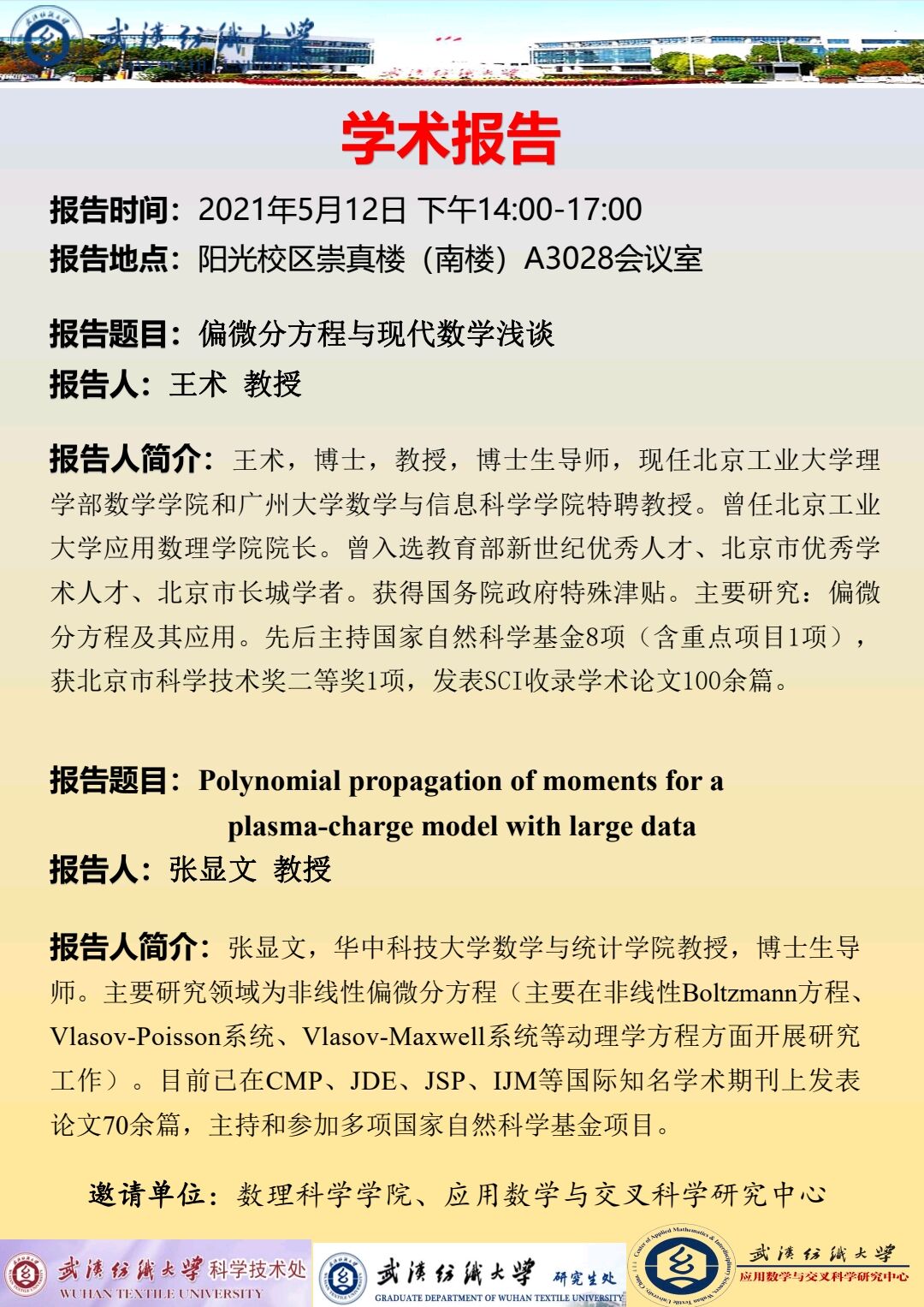 数理科学学院阳光论坛第1期暨数理科学学院第34期学术沙龙活动预告