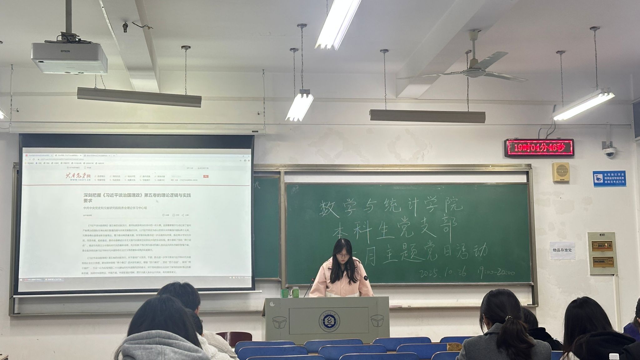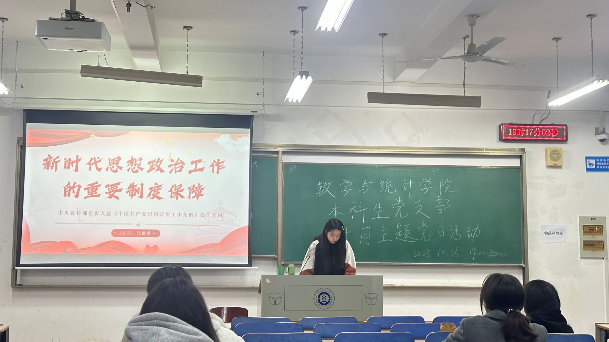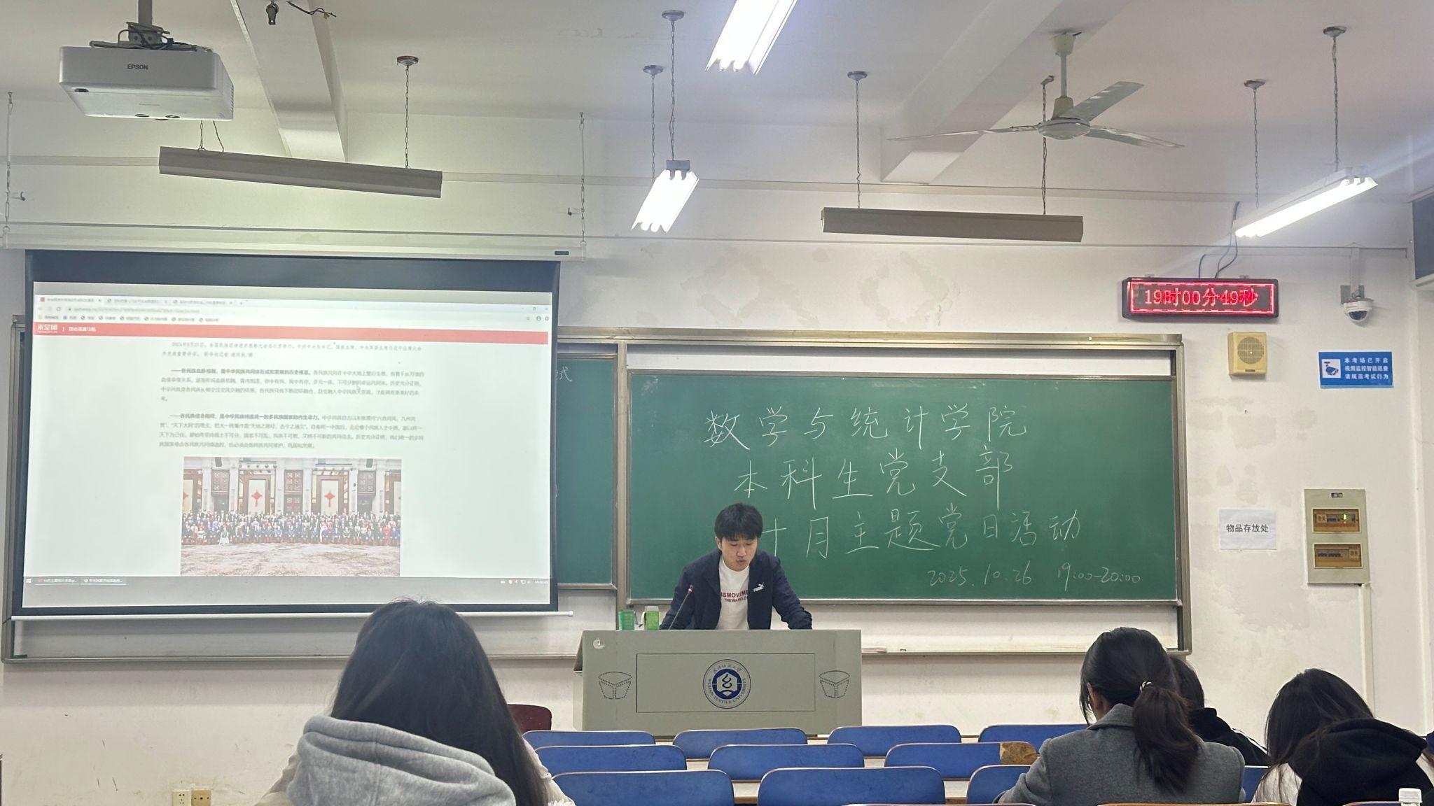 本科生党支部于2025年10月26日在崇志楼开展10月份主题党日活动。会议由本科生党支部党员胡家发同志、王婧怡同志、张雅祺领学,党支部全体党员参加会议。
