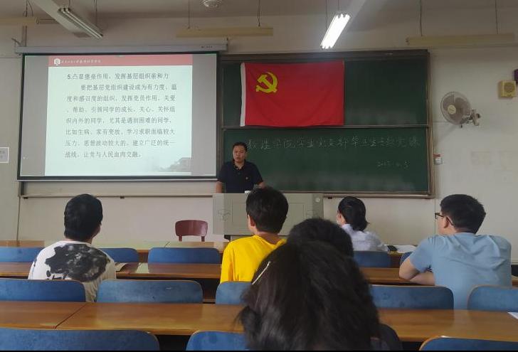 为学习贯彻习近平新时代中国特色社会主义思想,加强毕业生党员的思想政治教育,6月3日上午,数理科学学院党委副书记陈国鹏在崇志楼215教室为2022届毕业生党员讲授“贯彻新思想,增强战斗力,不断提升高校思想宣传工作能力”专题党课。会议由学生党支部书记方媛主持,全体毕业生党员参加。