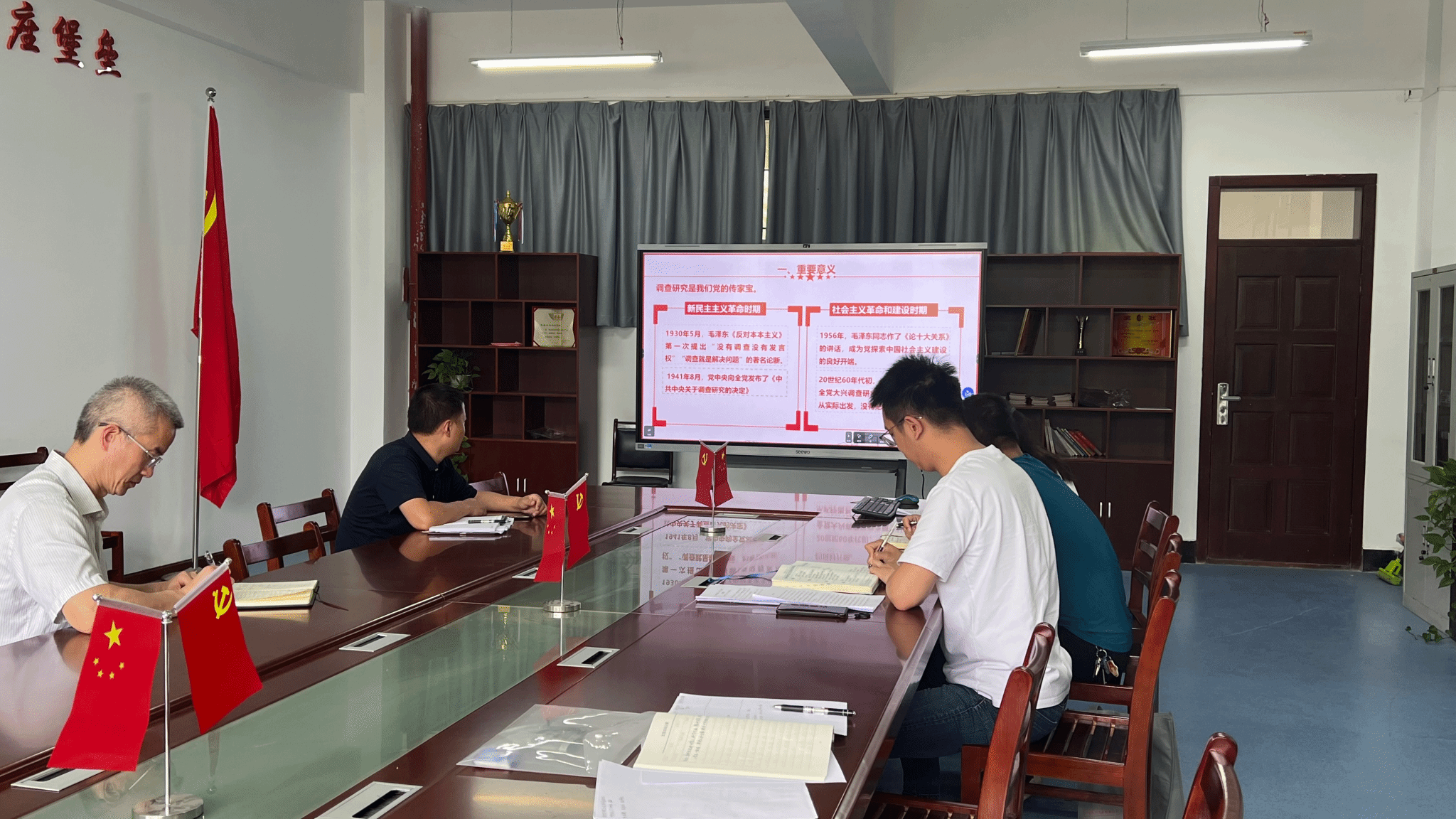 任艳琴同志带领大家共同学习了习近平总书记在中央学习贯彻习近平新时代中国特色社会主义思想主题教育工作会议上的重要讲话精神、中央主题教育工作会议精神和中共中央办公厅《关于在全党大兴调查研究的工作方案》精神。习近平总书记高度重视调查研究工作,要求大力弘扬调查研究的传统,在全党大兴调查研究之风。任艳琴同志从“大兴调查研究之风”的历史缘起谈到我们党调查研究的优良传统,阐述了调查研究对我党执政兴国的重要意义以及新时代如何做好调查研究。重点学习了习近平总书记关于调查研究的重要论述,以及在全党大兴调查研究的内容。党员同志们纷纷表示学有所获、学有所思、学有所得。