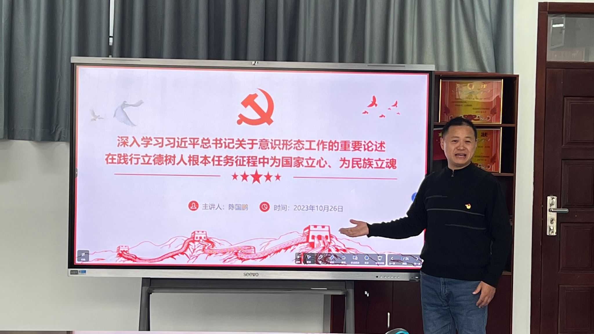 最后,陈国鹏强调,在意识形态工作中,我们要牢记使命与担当,要深入学习、领悟习近平新时代中国特色社会主义思想,要增强政治敏锐性和政治鉴别力,围绕中心,服务大局。在事关大是大非和政治原则问题上,必须增强主动性、掌握主动权、打好主动仗,帮助干部群众划清是非界限,澄清模糊认识。