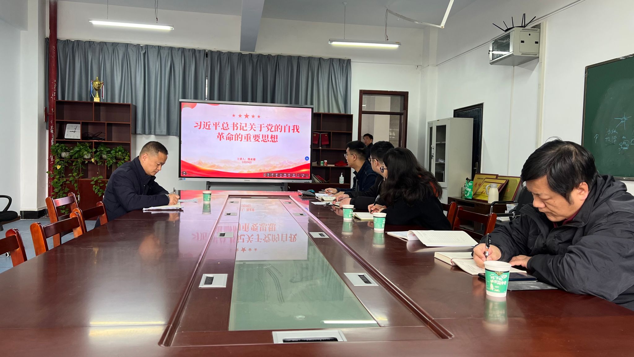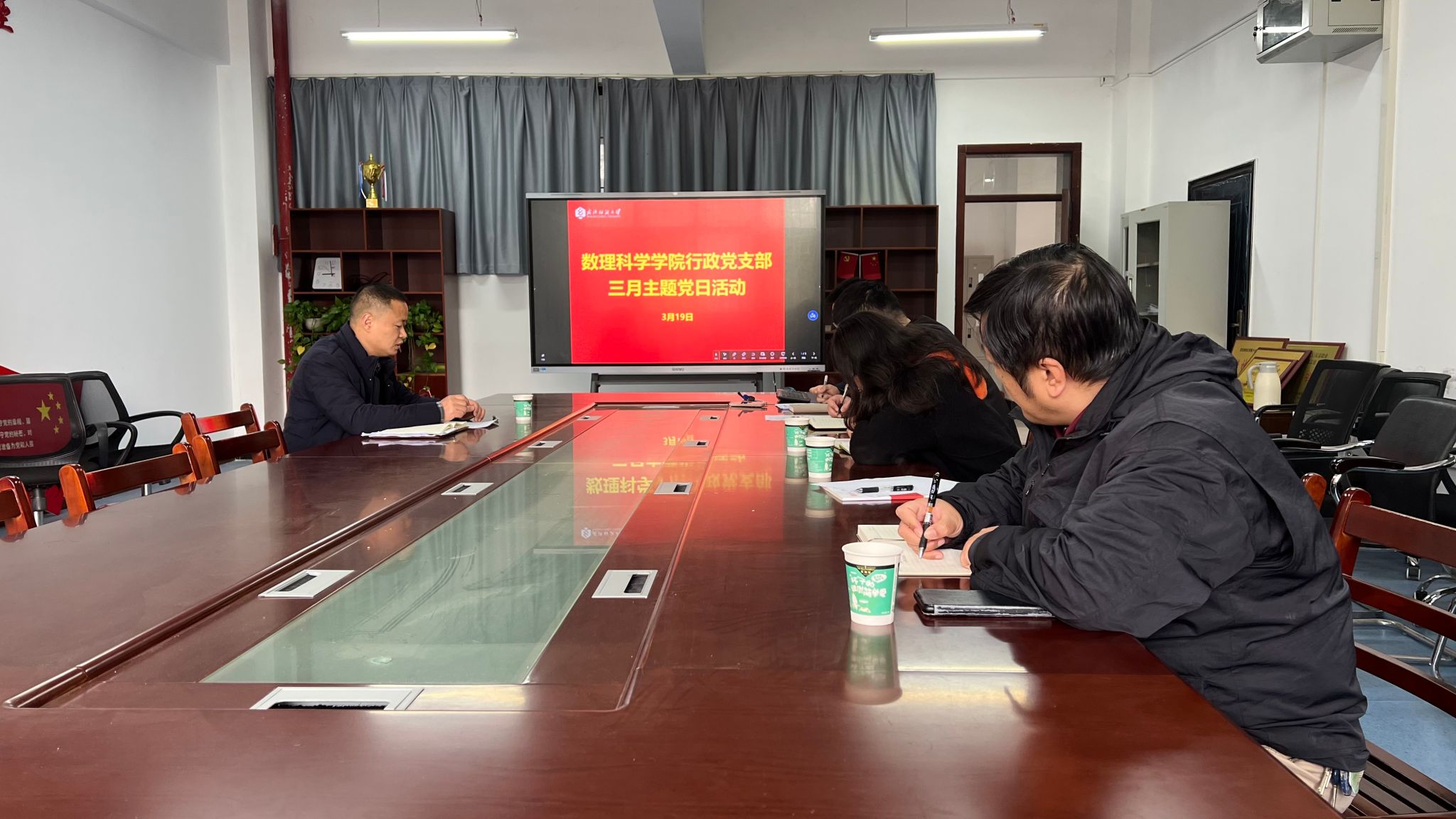 3月19日上午,根据校党委3月份支部主题党日学习要求,数理学院行政党支部在四号楼102会议室开展3月支部主题党日活动。本次活动由支部书记陈国鹏同志主持并领学。