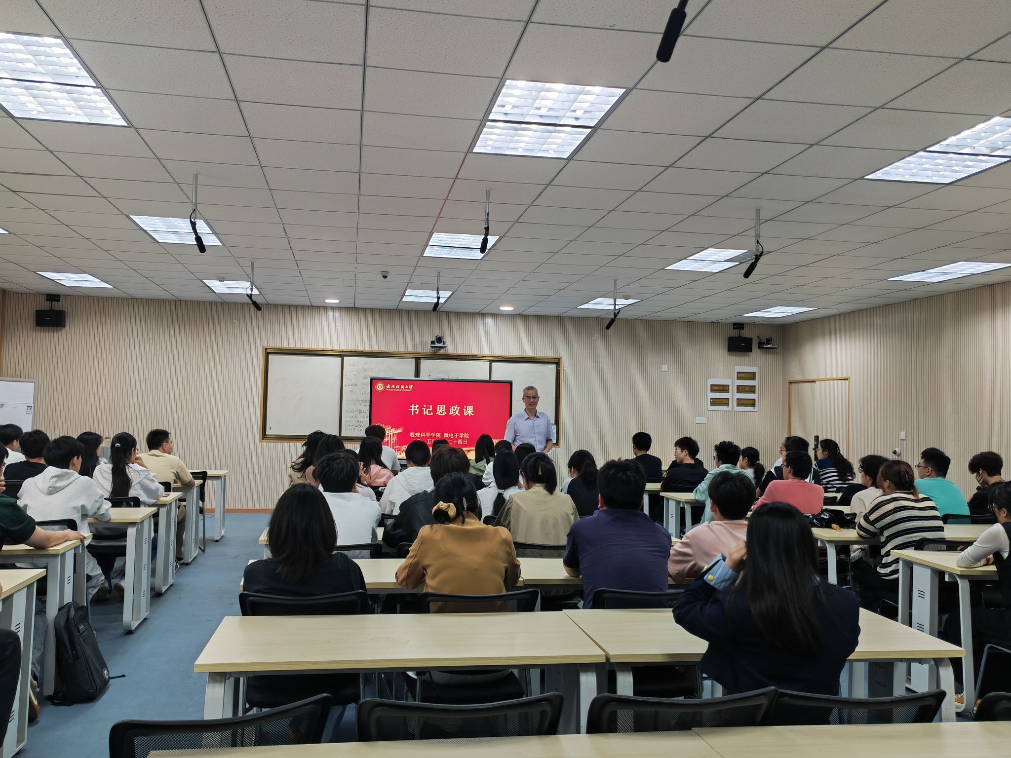 2025年4月24日,数理科学学院微电子学院在崇文楼205室,以“弘扬奉献精神,争当时代先锋”为主题举办书记思政课,学院党委书记段溢波主讲,党委副书记陈国鹏、学生党支部书记卫周瑶,学院本、硕全体党员、团委暨学生会骨干参与学习。