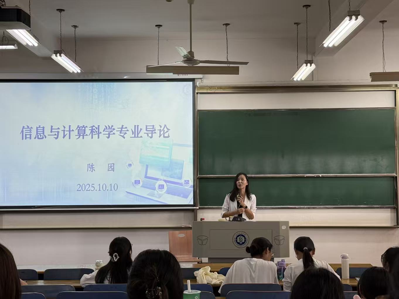 讲座伊始,陈园老师为活动致辞,强调信息与计算科学作为融合数学、计算机科学与信息技术的交叉学科,在数字经济时代的核心支撑作用,鼓励同学们以本次讲座为契机,主动探索学科奥秘,培养跨学科思维能力。