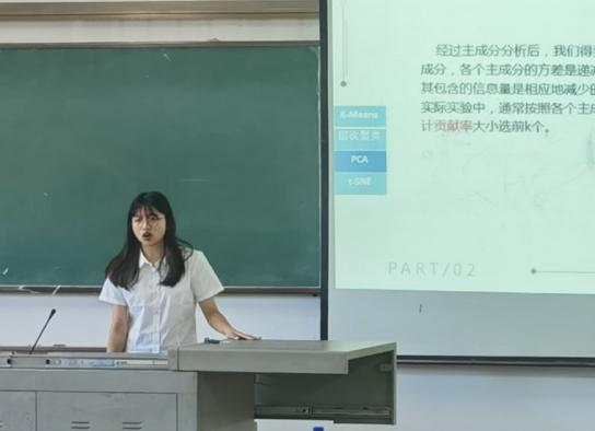 7名18级本科生做了主题报告。信科11802班芮烁同学向我们介绍了卷积神经网络及其在手写数字识别中的应用,并从研究动机、网络的原理、模型测试、卷积神经网络的应用等方面展开了介绍。信科11802班朱杨锋同学通过对湖北省人口现状分析,基于GM(1,1)模型的人口预测与基于BP神经网络的GM(1,1)模型改进,对“十四五”时期湖北省人口进行了预测分析。应数11801班杨菲同学报告了线上化学分子结构转换服务器的开发,从服务器设计,服务器需求分析,分析开发前景与学习准备四个板块讲述了自己的课题研究内容。信科11801班云文龙同学开展了大学生消费水平的调查,重点探索了网红经济对大学消费水平的影响,并根据调查结果从政府、学校和个人等角度给出了建设性的建议。信科11801班陈婉馨同学报告了几种聚类算法在银行营销数据中的比较研究,分别介绍K-Means聚类算法、层次聚类算法、主成分分析法、t-SNE四种算法,通过不同算法的对比得到了不同情况下的最优算法。信科11801班黄斌同学开展了湖北省第三产业影响因素的分析,从第三产业的发展现状、发展优势与劣势等方面向大家介绍了课题的主要研究内容。应数11801班陈安龙同学的研究课题是基于PK-means++聚类和加权的k近邻算法研究,通过现有k近邻算法的不足,从算法角度和数据角度提出了改进的想法,并用实验分析对其结果进行了比较。