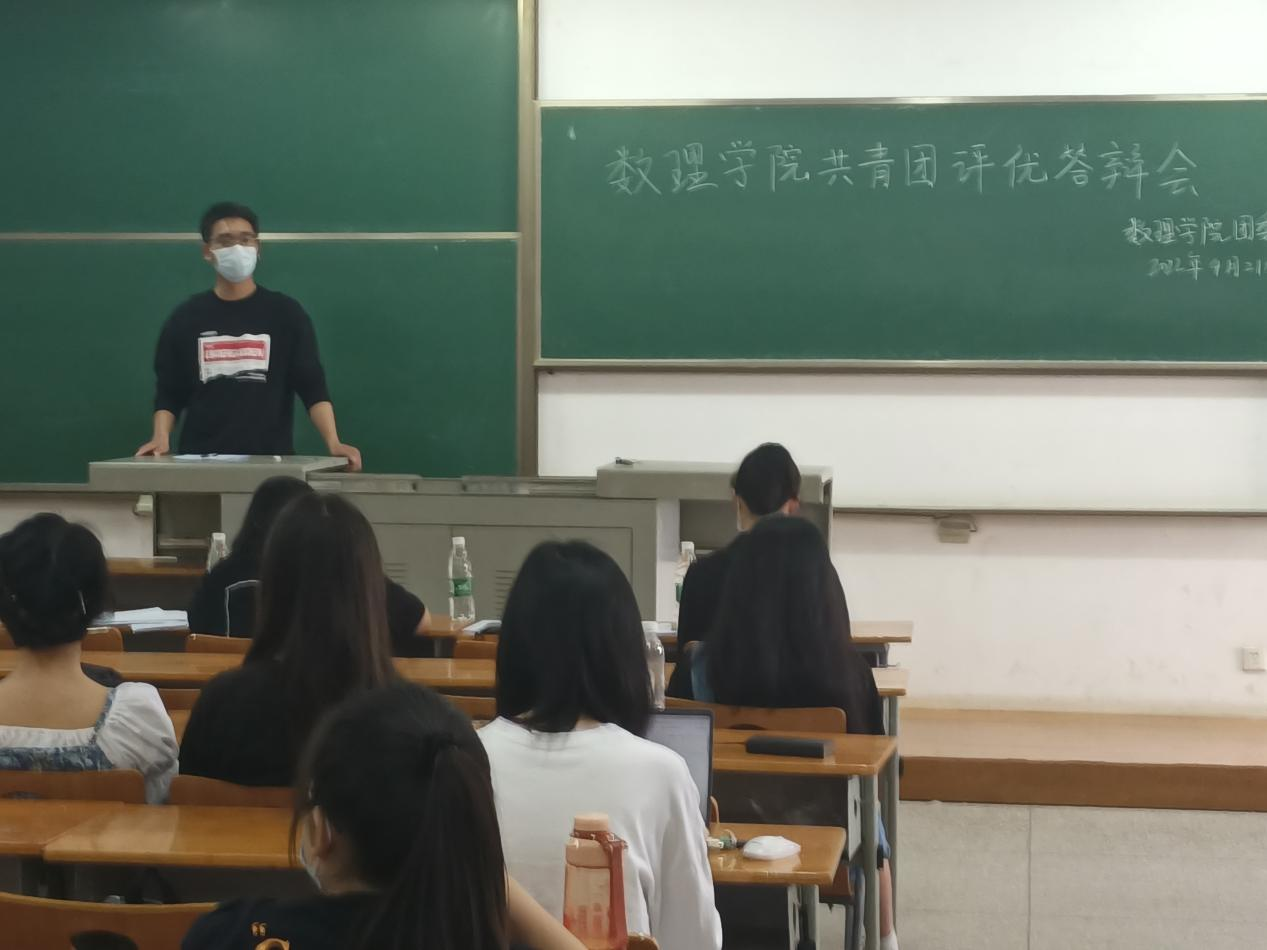 时值五四青年节来临之际,为响应校团委激励各级团干部和广大共青团员勤奋学习,扎实工作的号召,进一步发挥共青团在思想政治中的引领作用;同时为加强数理科学学院共青团基层组织建设,提升团支部组织力,展现团干部积极向上的精神风貌,学院于4月21日举行2021年度共青团评优答辩。出席本次答辩的评委有数理科学学院辅导员方媛,数理科学学院辅导员熊亚雄以及学院学生团委副书记杨晓磊。