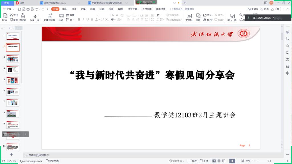 为培养数理科学学院学生的社会担当和责任意识,增强学习和实践的积极性和主动性,增进同学之间的沟通交流。2月27日晚,数理科学学院各班以线上直播的方式开展此次主题班会,组织各班学生畅谈寒假见闻,交流感想和心得。班会由各班班长、团支部书记主持。