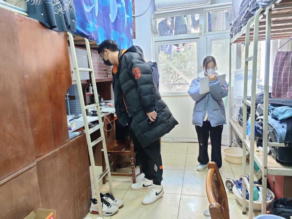 本学期接近尾声,为进一步了解同学们的宿舍生活,督促同学按时归寝,同时提高同学们的用电安全意识,加强学生宿舍管理,规范学生行为帮助同学们营造一个干净舒适、安全健康的寝室环境。12月20日至21日,数理科学学院辅导员方媛、熊亚雄带领学生会服务部成员进行了宿舍安全大检查。