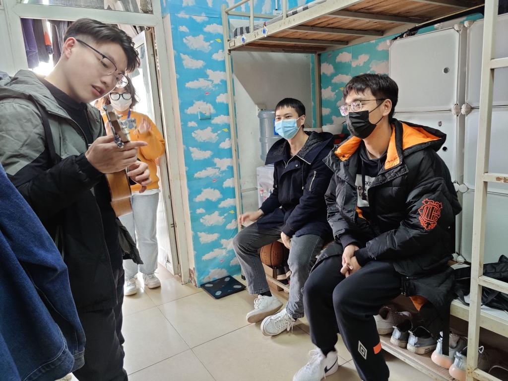 走访过程中,辅导员与同学们进行了亲切交流。辅导员关切的询问同学们的生活状况,叮嘱同学们认真阅读并遵守学校宿舍管理规定,并强调了宿舍安全注意事项,宿舍内不能使用违规电器,注意用电安全。同时提醒对于部分沉迷游戏的同学,希望他们在课余时间勤奋学习,积极参加各类课外活动,提升自身素质。