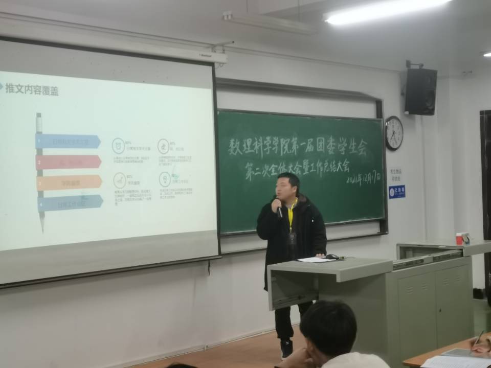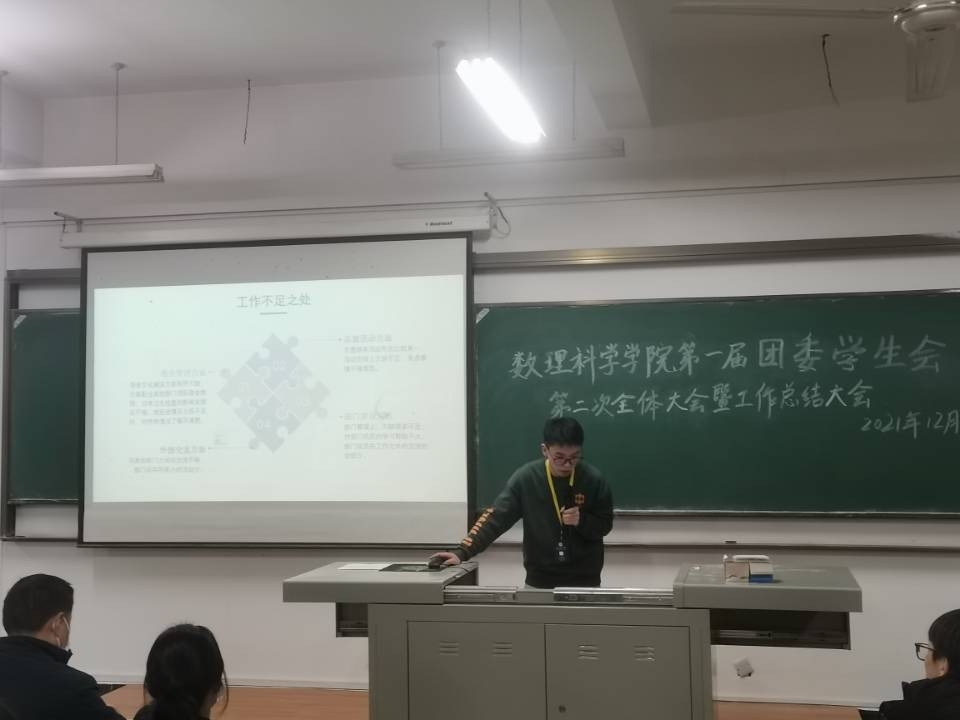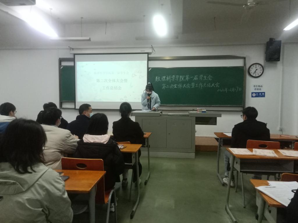 为进一步加强学生会干部队伍建设,提高学生会成员工作质量。12月17日晚,数理科学学院于崇文楼隆重召开第二次学生会暨工作总结会。数理科学学院党委副书记陈国鹏,辅导员熊亚雄、方媛及学生会全体成员悉数参与本次总结大会。
