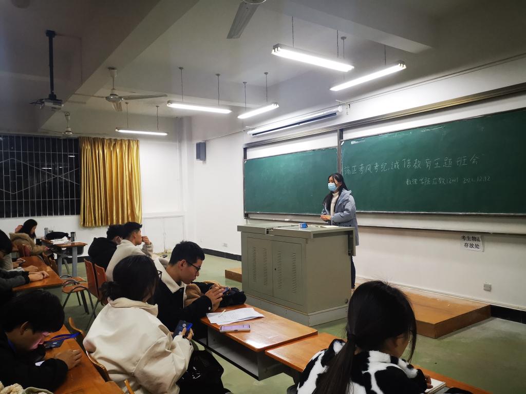 期末将至,为帮助同学们进入复习状态,树立良好的"考风、考纪”,进一步规范学校考试工作。12月12晚,数理科学学院各班于崇志楼、崇文楼组织召开了以“诚信考试"为主题的班会。数理学院同学们积极参与,并为树立良好的考风、考纪提出了宝贵的意见。