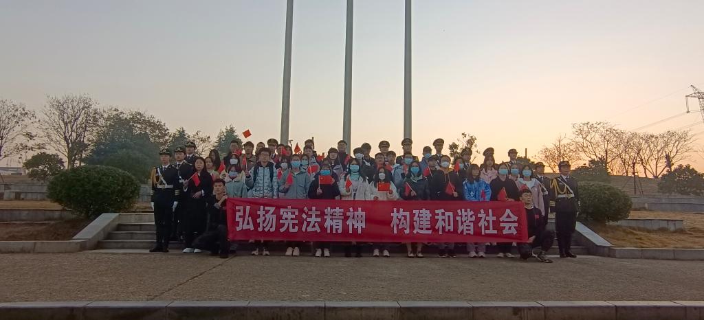 的上空。在场人员行注目礼,共同祝愿伟大祖国繁荣昌盛。在此之后,数理学院李扬同学作为学生代表发言,她强调,国无法不治,民无法不立,并号召同学们“知法、守法、用法”,从身边做起,从小事做起,回应祖国对我们的期望,做新时代合格的大学生。激昂洪亮的声音回荡在校园内,展现出学子们用心维护宪法,知法用法的决心!
