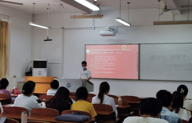 为贯彻落实“学党史,明条例,深刻领会‘七一’讲话精神”,9月30日,数理科学学院党委学生党支部于崇志楼104室开展支部九月主题党日活动。学生党支部书记方媛、支部全体党员参加会议。