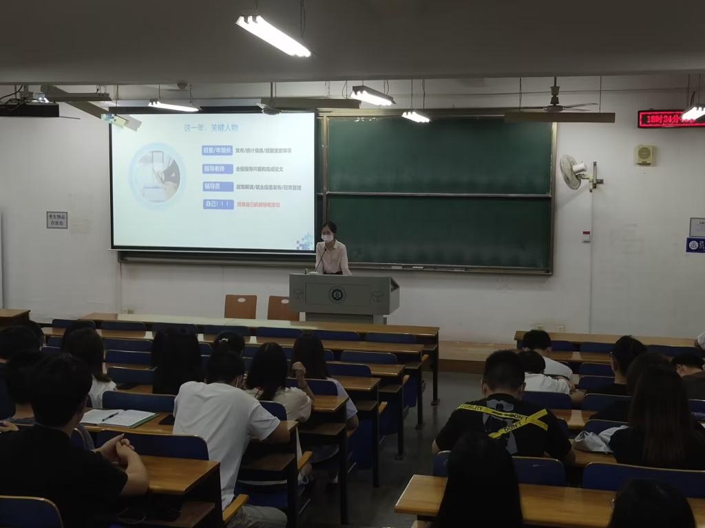 方老师为大家梳理了大四学年的关键时间节点和关键事项。她提醒,就业系统信息采集、个人学分确认以及毕业论文等工作对于每一位毕业生都至关重要,同学们应认真完成相关内容,确保顺利毕业。而后分别向考研、考公、就业的同学提出了一系列建议。此外强调了在大四学年遵守纪律规定的重要性。