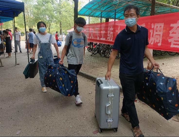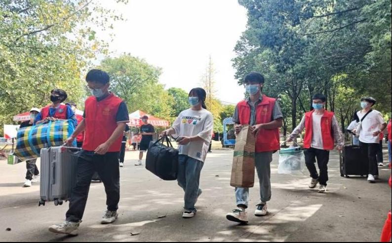 在迎新现场,党员们身着红色马甲,佩戴党员党徽,以热情饱满的精神状态奔走在迎新一线。作为新生在纺大见到的“数理第一人”,他们主动接过新生手上的行李,引导新生有序办理各项入学手续,带领新生顺利入住寝室,介绍校园环境,帮助答疑解惑等,忙碌的身影和热心的帮助传递着学院的关怀与温暖。