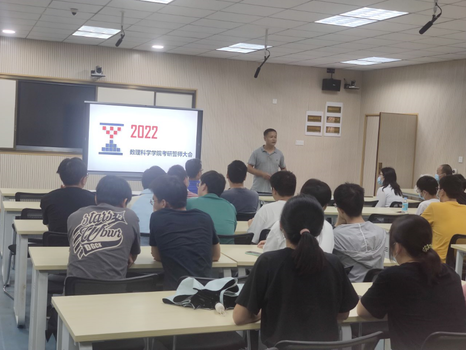 为激励考研同学的备考信心,鼓舞考研士气,2022年9月22日下午,数理科学学院在崇文楼205教室举行2019级考研誓师大会。出席大会的有院长汪胜祥、党委书记段溢波、党委副书记陈国鹏、刘杰教授、辅导员熊亚雄、方媛及2019级考研同学,大会由党委副书记陈国鹏主持。