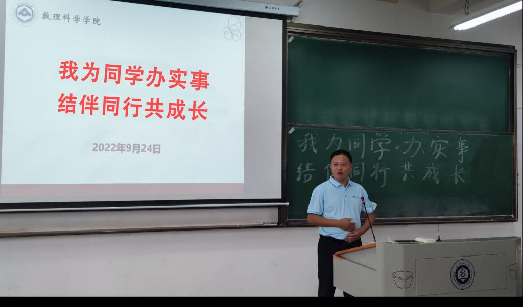 根据学校“我为同学办实事,结伴同行共成长”工作部署,进一步推进常态化学生精准帮扶服务工作,9月25日下午,数理科学学院党委副书记陈国鹏结合军训内容向全体2022级新生作出了开学寄语。