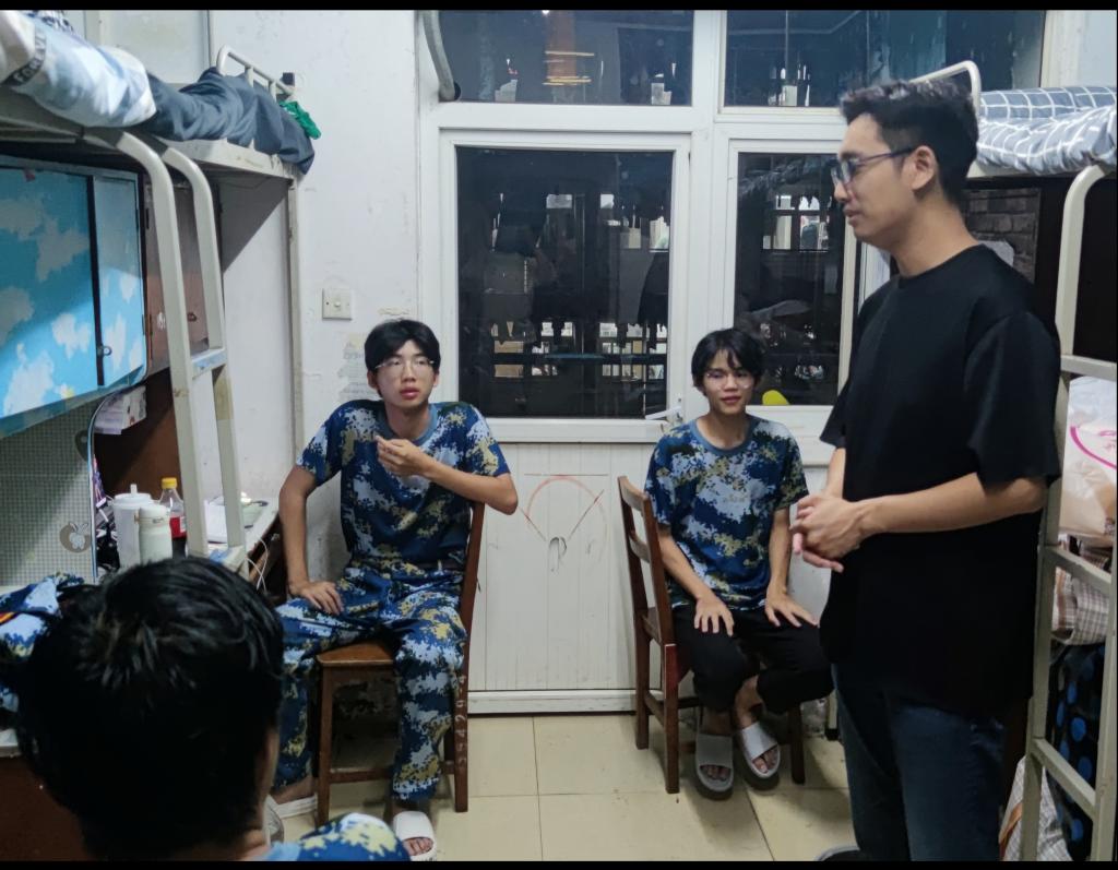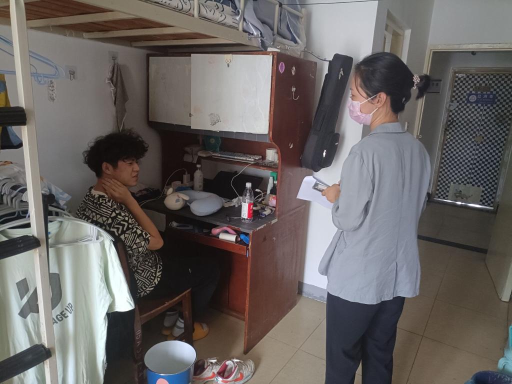 在此次“进宿舍”过程中,辅导员熊亚雄、方媛结合对学生宿舍看、访、查、问等方式方法,对学生宿舍的环境卫生、文化氛围、文明礼貌、人际关系和学风舍风等进行全面、深入、准确的了解和掌握。重点关注2022级新生,围绕新生接下来的课程学习安排,日常生活的作风养成,及军训期间的健康情况进行了细致的询问。对于其他年级学生,从思想动态、学风舍风、学业就业三个方面进行相关交谈,确保掌握各个年级学生的各方面动态。