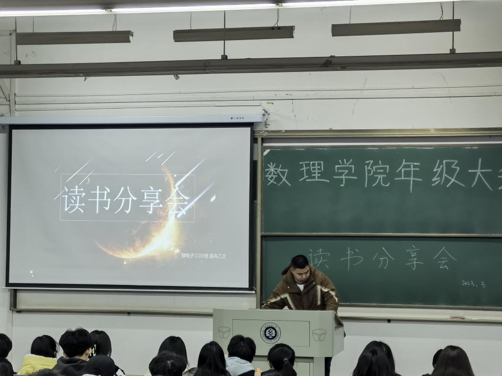 秉持着书香文化进校园,让同学们养成爱读书、多读书、读好书的习惯,3月19日,数理科学学院于崇志楼T202教室开展第一次读书分享会。此次分享会由陈屹主持,辅导员熊亚雄,各班副班及22级全体学生参与此次会议。