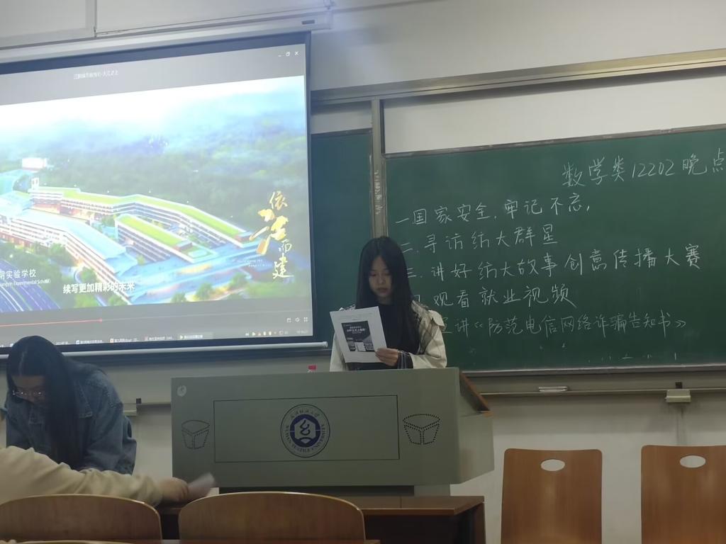 为增强学生国家安全意识和素养,做好国家安全教育日的宣传教育,4月9日,数理科学学院各年级于崇志楼开展“国家安全教育”主题班会。此次会议由各班班长主持,各班班主任、各年级辅导员及全体学生参与此次会议。