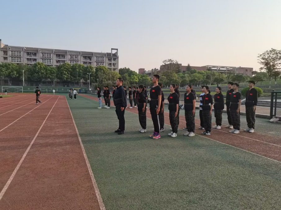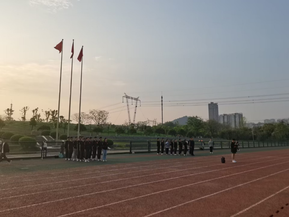 国旗护卫队于阳光体育场举行升旗仪式,数理科学学院全体大一同学参与此次观旗活动。