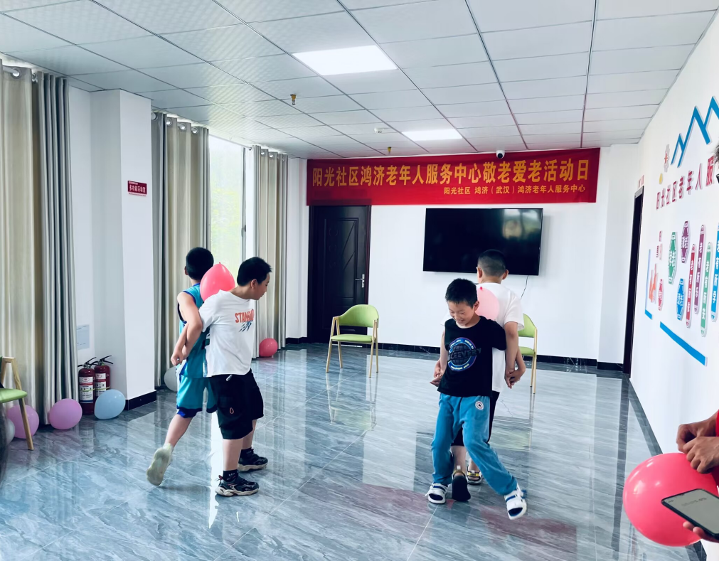 进行宣传,随后在小朋友的热烈欢呼中,迎来了游戏环节。小朋友们根据人数被分为了4组,每组6人,在志愿者的引导下首先进行了“夹心饼干”游戏,每组队员两两结伴,轮流背靠背夹住气球走完5米路程,志愿者们将对其计时并对各个小组进行排名。参数小朋友们兴致勃勃,十分投入,台下观赛的孩子们卯足力气大喊加油,气氛十分活跃。