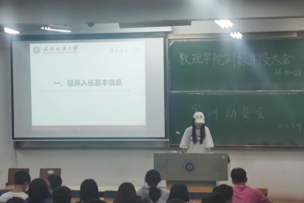 为扎实开展大学生征兵入伍宣传工作,引导学生进一步了解征兵政策,同时落实好学院各项工作安排,5月14日,数理科学学院各年级开展征兵宣传主题班会,此次班会由各班班长主持,各年级辅导员及数理学院全体同学参与此次会议。