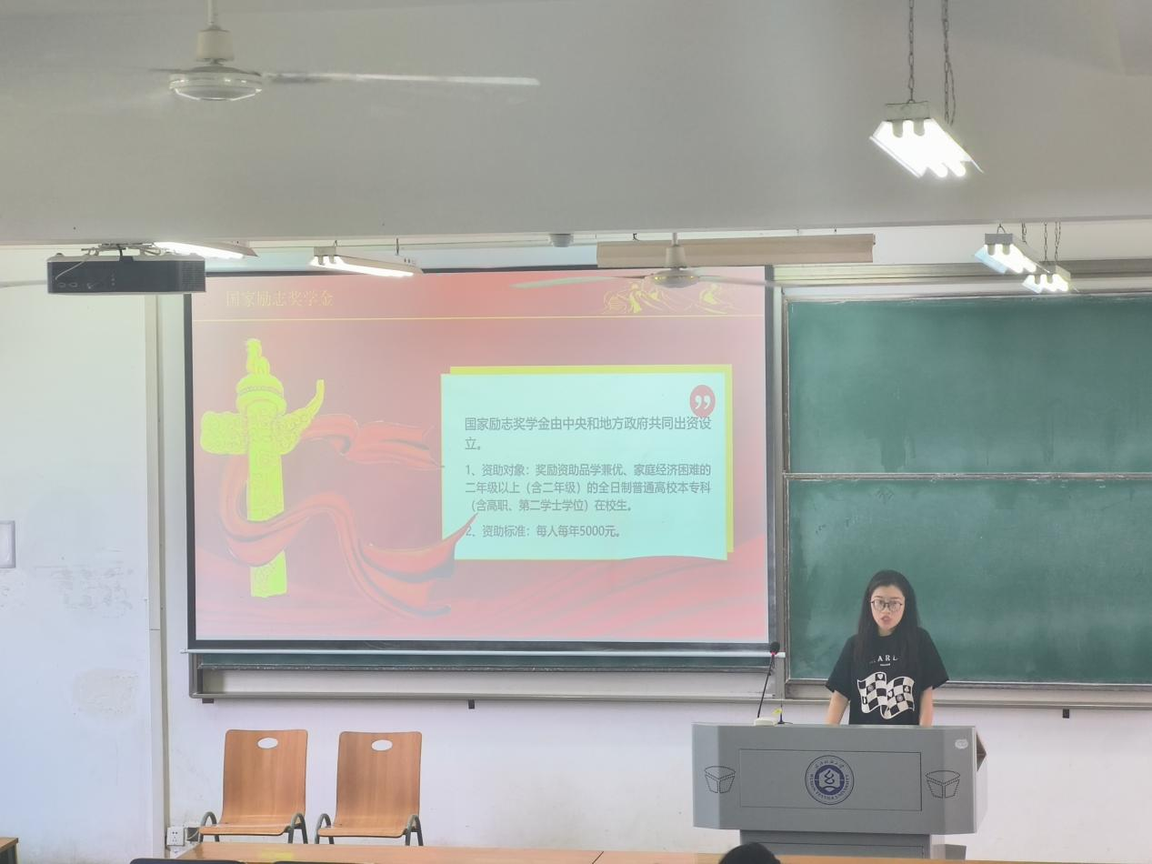 6月8日,数理学院国家励志奖学金获得者罗淑杰同学向全院学生代表做了《国家资助宣传政策》宣讲,经过4年的努力,她如愿考上了南京邮电大学应用统计专业研究生。会上,她分享了自己的考研经历,表达了对学校和国家的感恩,她说:“我很庆幸,自己没有蹉跎岁月,每天都在追求那个想要去成为的自己。这一切,都是强大的国家和学校作为我坚强的后盾。”