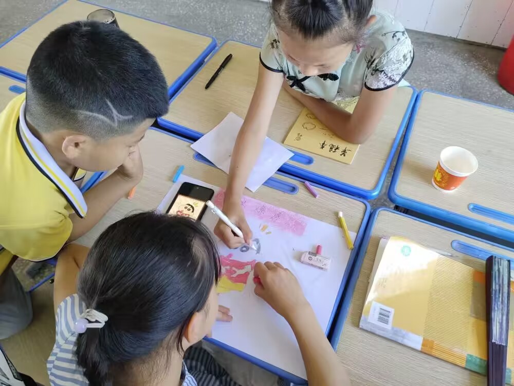 第一天的活动饱含着热情与期待,志愿者与小朋友们共同展开了一段难忘的旅程。破冰仪式正式开始后,志愿者们首先向大家进行自我介绍,一字一句中都洋溢着满心的欢喜和对支教活动的热爱。这个简单而温暖的自我介绍环节不仅拉近了志愿者与孩子们之间的距离,更为后续的团队分组活动奠定了基础。为了帮助小朋友们更好地相互认识,志愿者们组织了一系列破冰游戏和团队建设活动。孩子们分成小组,由不同的志愿者带队进行队伍组建与队徽队名设计。他们共同克服挑战,互相支持,激发了团队合作的精神。随后,由志愿者带队进行小组展示,每一张精巧的图画都代表着团队的凝聚,响亮的小组口号充斥在整个教室,伴随着同学们的欢声笑语,本次开班破冰仪式正式结束。