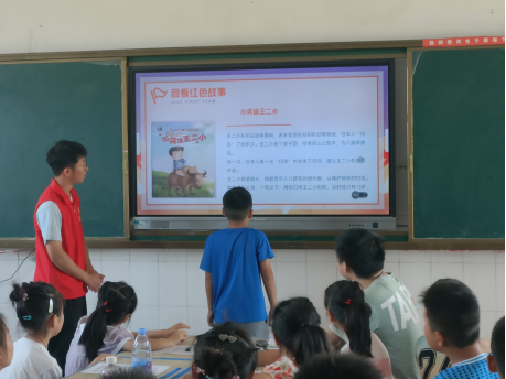 为了更好的了解红色历史,志愿者组织大家一起学习红色英雄故事,用红色故事触动小学生们的心灵。小学生们都踊跃上台,带着饱满的热情声情并茂地进行故事朗诵,一个个感人肺腑的红色英雄故事呈现在大家面前,小朋友们深刻感受到了党的无私奉献和革命精神的伟大力量。朗诵结束后,更有一组小朋友积极上台演绎小英雄雨来的事迹,台下的孩子们全神贯注地观看故事,时而沉默,时而欢呼,无不被这伟大的革命精神所感动。