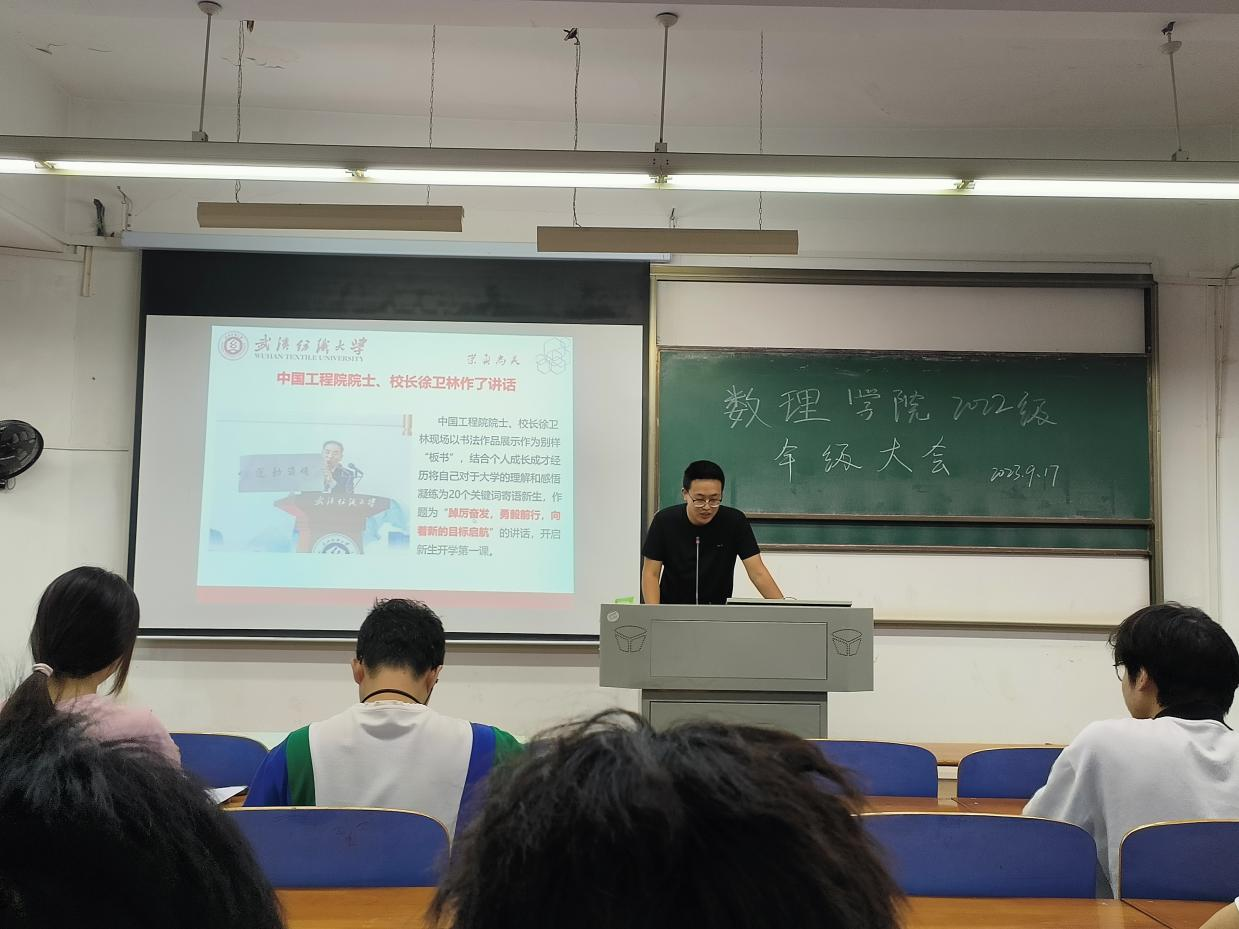 9月17日下午,数理科学学院2022级第一次年级大会在崇志楼T102教室正式召开。数理科学学院2022级全体同学和辅导员熊亚雄老师参加此次会议,会议由年级长罗雨露主持。