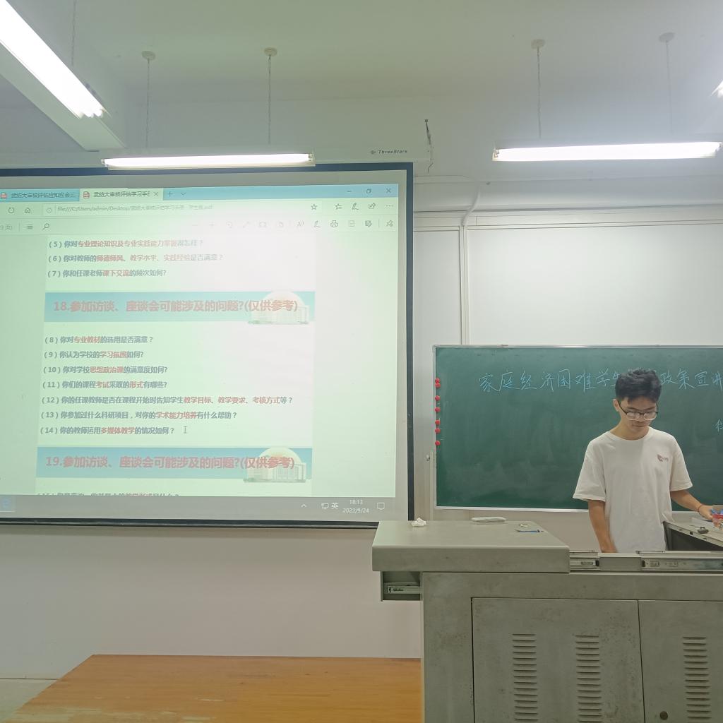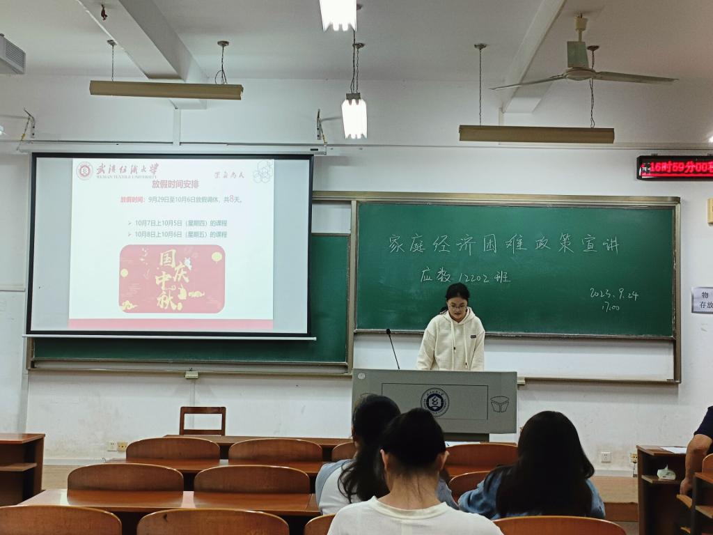 家庭经济困难学生认定工作实施细则》文件要求,于2023年9月24日,数理科学学院各班分别展开了家庭经济困难学生认定政策宣讲,本次宣讲由各班班主任以及班长进行宣讲。