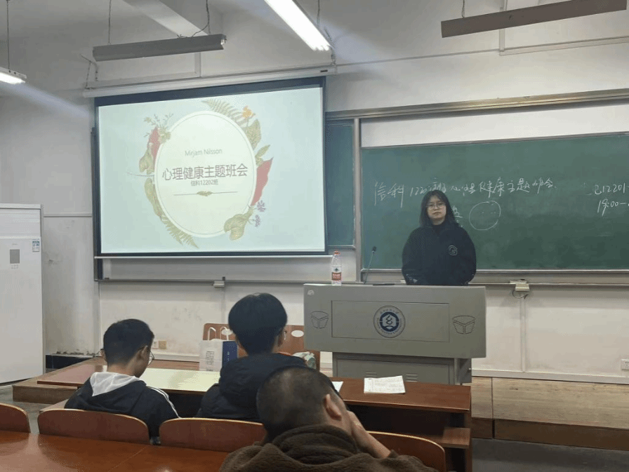会议最后,团支书针对“心理健康”这一课题进行了深入的探讨。学校为保障学生良好的心理状态建立了大学生心理健康教育中心,加强心理健康知识的宣传和普及,通过多种形式的活动提高师生的心理素质和应对能力。