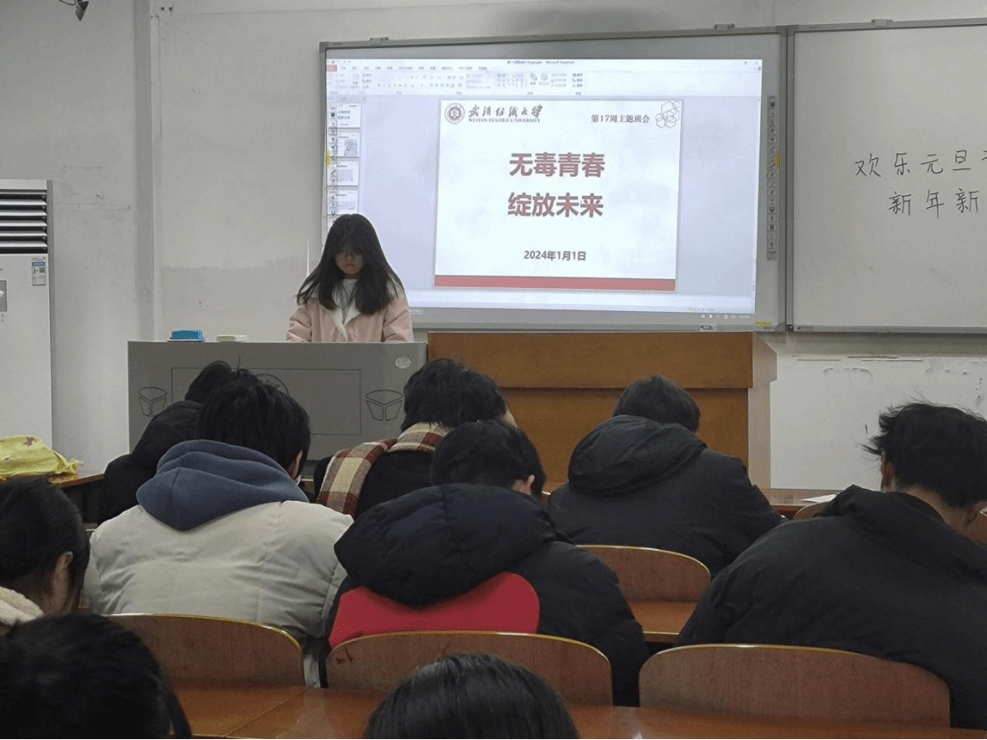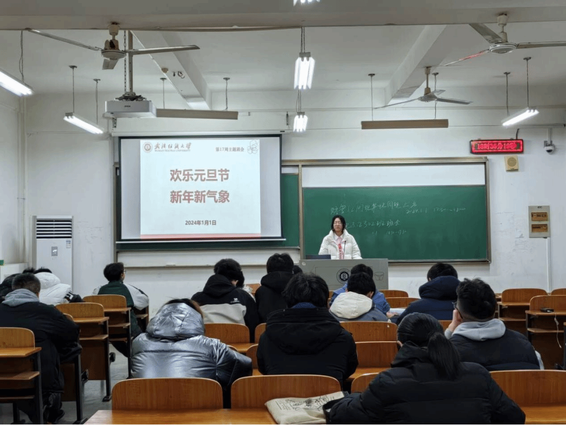 2024年新年贺词。“C919大飞机实现商飞,国产大型邮轮完成试航,神舟家族太空接力,“奋斗者”号极限深潜”,过去的2023,国家加快构建新发展格局,推动高质量发展;“生物工程与健康学院成立王栋教授荣获‘全国五一劳动奖章’,梅顺齐教授领衔‘先进制造与纺织装备教师团队’”,过去的2023,武纺人以时不我待的朝气,向着新的美好出发。在班会上,我们为国家的进步而自豪,为武纺人奋斗不息的拼搏而骄傲。