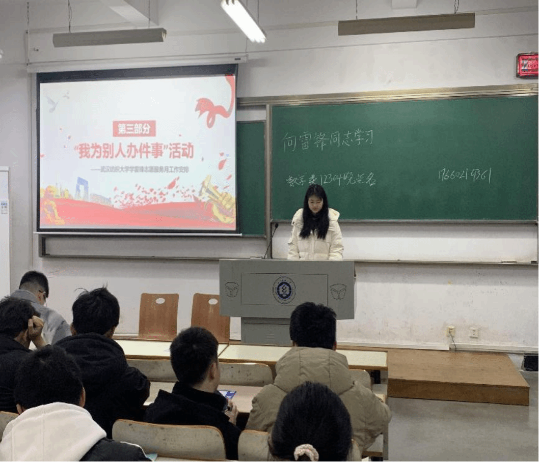 各班班长引领大家开展了主题为“我为别人办件事”的团日活动。讲述了雷锋同志的感人事迹,深刻诠释了雷锋精神的核心内涵。雷锋精神中的热爱党、热爱祖国、热爱社会主义的崇高理想和坚定信念,服务人民、助人为乐的奉献精神,干一行、爱一行、精一行、专一行的敬业精神,锐意进取、自强不息的创新精神,以及艰苦奋斗、勤俭节约的创业精神,都是值得我们学习和传承的宝贵财富。引导同学们深入思考,探讨在新时代背景下,继续弘扬和传承雷锋精神的重要性和意义。