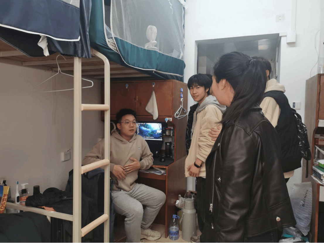 陈国鹏一行对寝室进行了严格的安全隐患排查,强调了宿舍用电安全等问题,重点对宿舍用电安全、卫生问题等进行排查,确保没有学生使用大公率用电器。他们针对学生的生活、学习等情况与学生进行深入交流。查寝过程中,老师们叮嘱大家日常生活中务必注意安全,保持宿舍卫生,增强安全意识,鼓励同学们养成良好的学习生活习惯。同时,陈国鹏重点了解了大四学生考研、就业情况,并为学生的未来人生走向提供宝贵的建议。