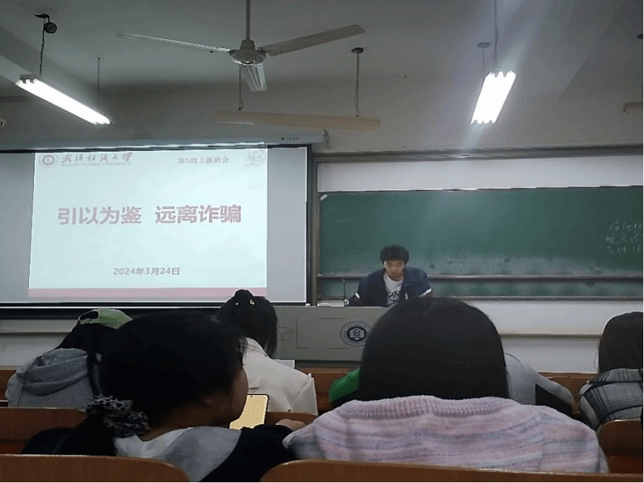 随后,各班团支书传达了“引以为鉴,远离诈骗”主题班会内容。随着经济社会发展和现代通信网络技术进步,电信网络诈骗犯罪也迅猛增加、案件持续高发,成为影响群众安全感的突出问题。大学生作为网络活跃地群体更容易接触到一些新型诈骗手段,团支书表示同学们应该引以为鉴,远离诈骗。