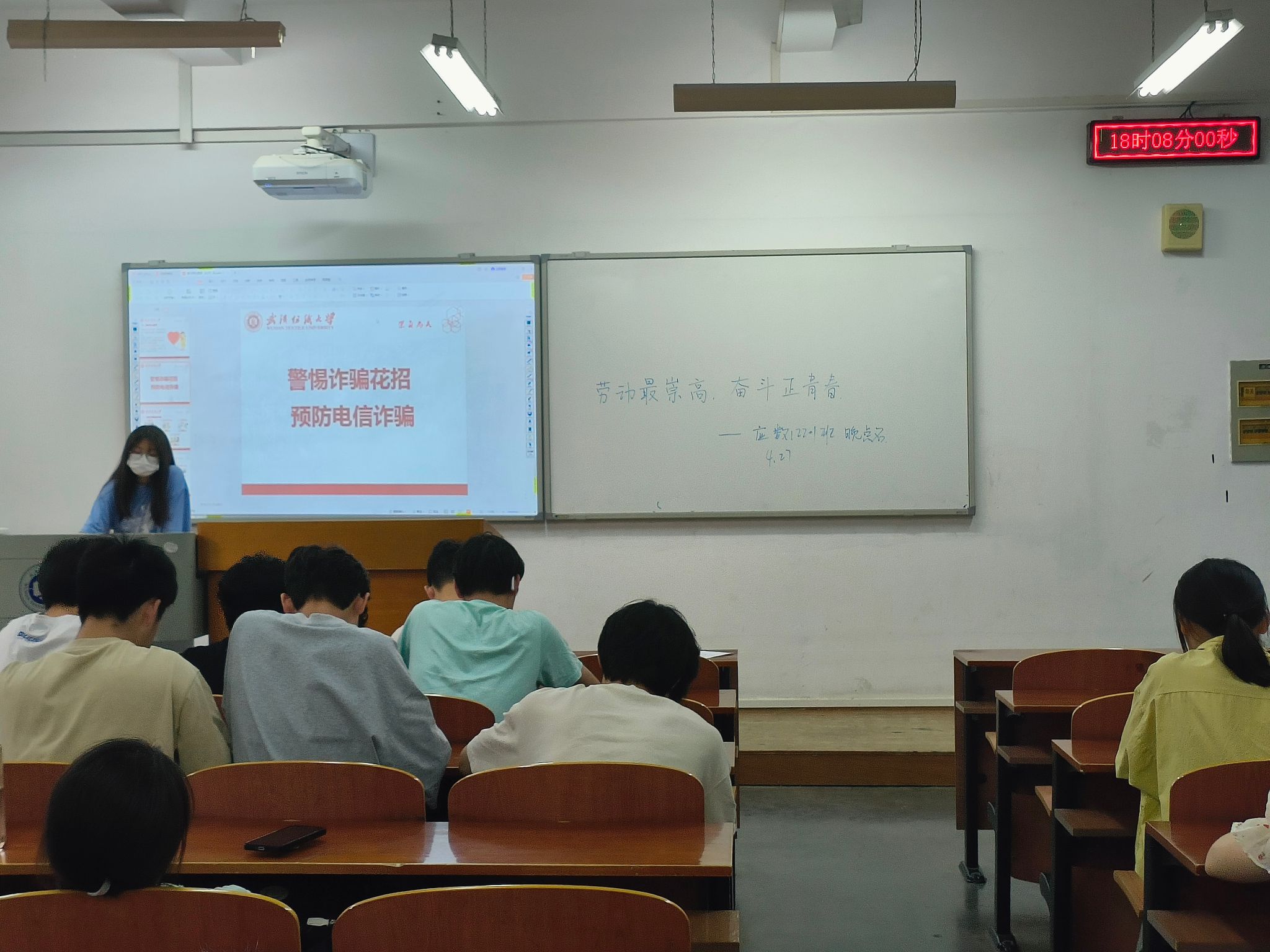 接着,各班班长向同学们宣讲了“警惕诈骗花招,预防电信诈骗”会议内容,希望同学们在五一假期期间,一定会提高警惕,保护好自己的财产安全。提高了同学们的安全意识和防范能力,也为他们度过一个安全、愉快的假期提供了有力保障。