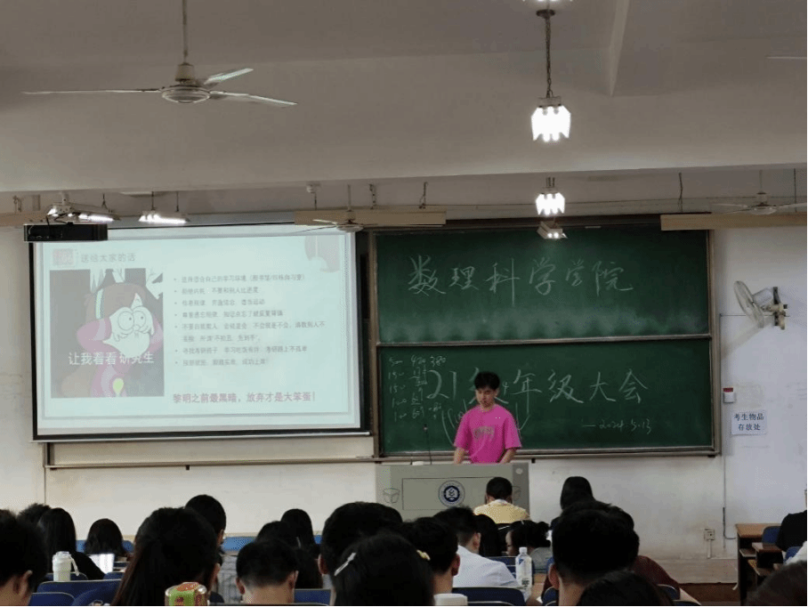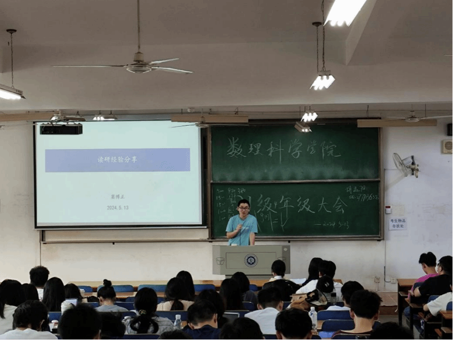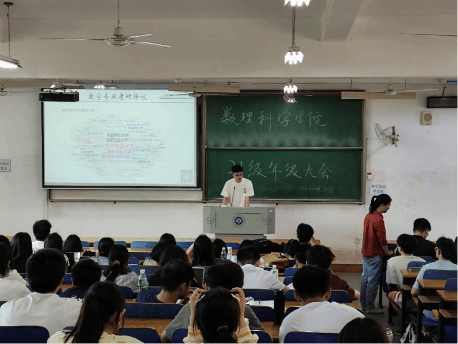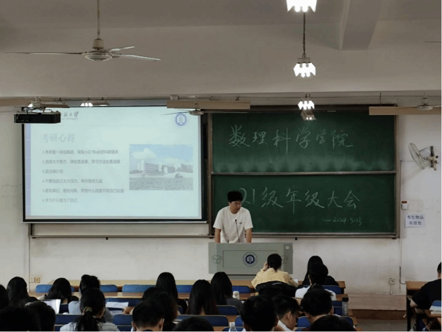 本次年级大会的开展,使同学们掌握了更多宝贵的考研经验,进一步明确自己的目标,也加强了同学们对于考研复习的具体安排,调动了同学们的考研积极性,在考研之路上更加坚定方向、稳步向前。希望数理科学学院的同学们不懈奋斗,努力书写无愧于时代、无愧于祖国、无愧于人民的青春华章!
