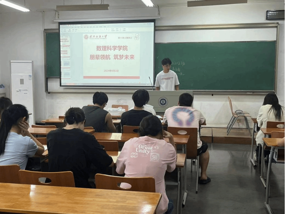 为了强调随之而来的期末考试诚信应考问题;夏季到来防溺水问题;毕业季来临的朋辈引航。数理科学学院于六月二日在崇志楼举办与之相关的主题班会,参加此次会议的有各班班主任与全体同学,会议由各班班长主持。