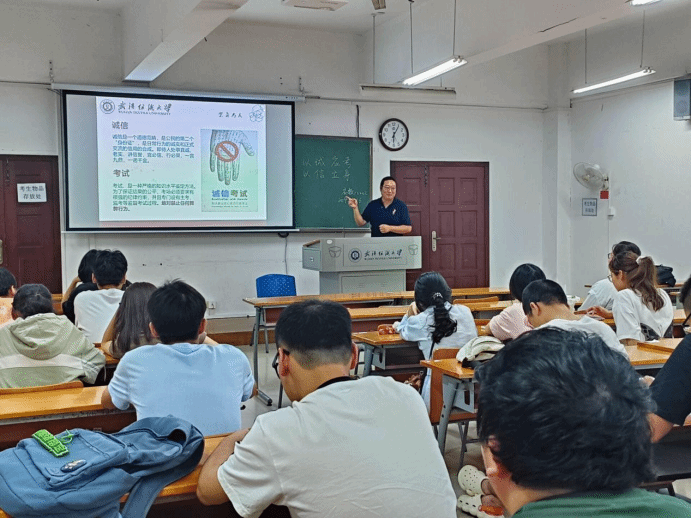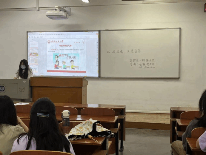 为提高同学们的诚信意识,端正考风考纪,弘扬诚信考试精神,鼓励同学们自觉遵守考场纪律,数理科学学院于6月16日于崇志楼开展了“以诚应考,以信立身”主题班会。数理科学学院全体同学、各班班主任参与本次会议,班会由各班班长主持。